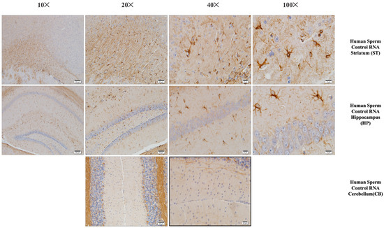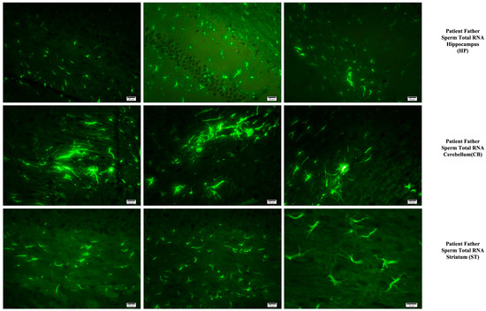 Fluorescent staining in the hippocampus, cerebellum, and striatum of mice born after microinjection of RNA from sperm of patient’s father.