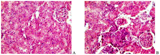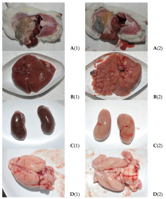 In an experiment lasting 2–22 weeks, white laboratory rats of the Wistar line, male, aged 2 months and weighing 140–150 g, were involved. Groups of control (n = 26) and TAA-induced rats (n = 55) were kept under natural light and a standard diet. Control animals received pure drinking water, and the group of TAA-induced rats consumed an aqueous solution of TAA at a concentration of 0.4 g/L. Addiction to the toxin occurred gradually, with a weekly increase in the dose of TAA in drinking water of 0.05 g/L until a final concentration of 0.4 g/L was obtained. The countdown to the experiment began on the first day of taking the final concentration of the toxin.