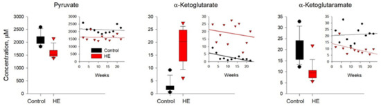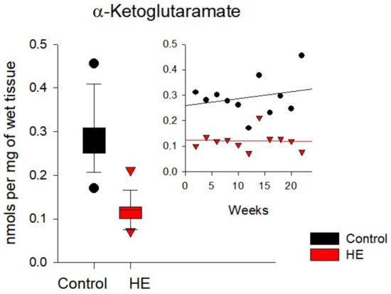 For the αKG and αKGM metabolites included in the Gln-Glu cycle, as well as their ratios (αKG/αKGM), a certain bioindicative significance was revealed. Thus, under the conditions of the development of chronic HE in the liver, kidneys, brain, and blood plasma of rats, the level of αKG increased while the level of αKGM decreased.