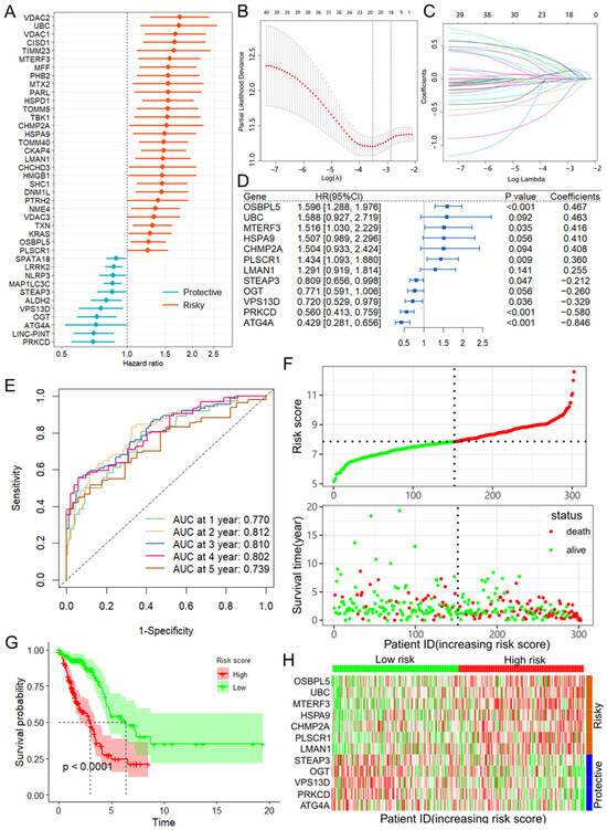 - Zhuo, Z.; Lin, H.; Liang, J.; Ma, P.; Li, J.; Huang, L.; Chen, L.; Yang, H.; Bai, Y.; Sha, W. Mitophagy-Related Gene Signature for Prediction Prognosis, Immune Scenery, Mutation, and Chemotherapy Response in Pancreatic Cancer. Front. Cell Dev. Biol. 2021, 9, 802528. [Google Scholar] [CrossRef]
