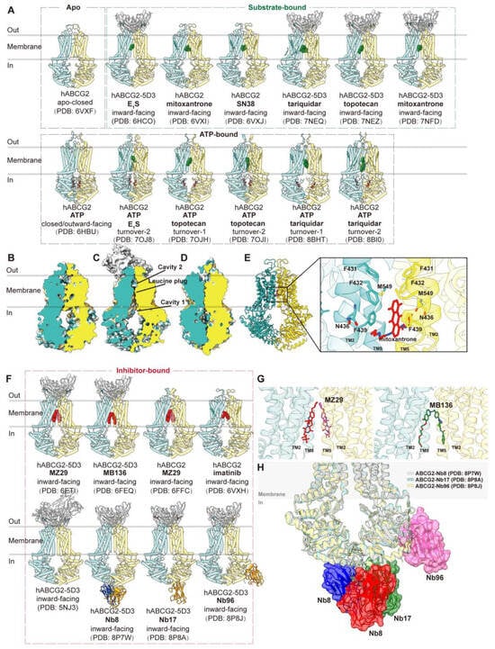 - Orlando, B.J.; Liao, M. ABCG2 transports anticancer drugs via a closed-to-open switch. Nat. Commun. 2020, 11, 2264. [Google Scholar] [CrossRef]