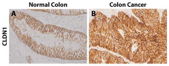 - Resnick, M.B.; Konkin, T.; Routhier, J.; Sabo, E.; Pricolo, V.E. Claudin-1 is a strong prognostic indicator in stage II colonic cancer: A tissue microarray study. Mod. Pathol. 2005, 18, 511–518. [Google Scholar] [CrossRef]