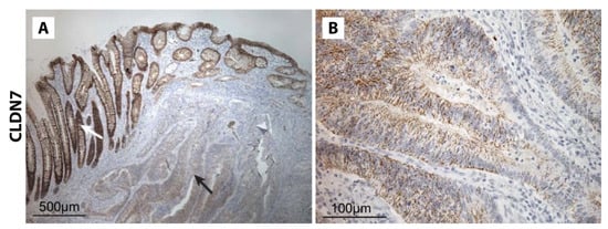 - Hahn-Strömberg, V.; Askari, S.; Ahmad, A.; Befekadu, R.; Nilsson, T.K. Expression of claudin 1, claudin 4, and claudin 7 in colorectal cancer and its relation with CLDN DNA methylation patterns. Tumour Biol. 2017, 39, 1010428317697569. [Google Scholar] [CrossRef]