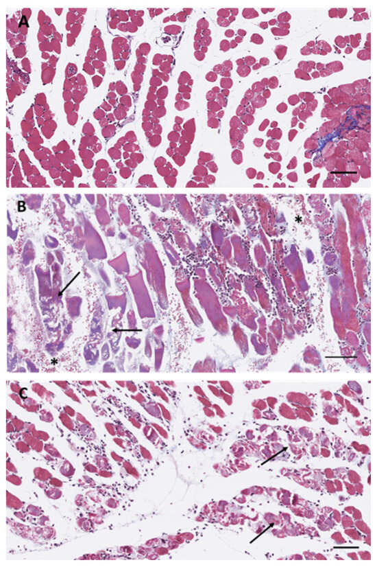 - Gutiérrez, J.; Ownby, C.L.; Odell, G.V. Skeletal muscle regeneration after myonecrosis induced by crude venom and a myotoxin from the snake Bothrops asper (Fer-de-Lance). Toxicon 1984, 22, 719–731. [Google Scholar] [CrossRef]