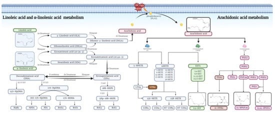 - Wang, B.; Wu, L.; Chen, J.; Dong, L.; Chen, C.; Wen, Z.; Hu, J.; Fleming, I.; Wang, D.W. Metabolism pathways of arachidonic acids: Mechanisms and potential therapeutic targets. Signal. Transduct Target Ther. 2021, 6, 94. [Google Scholar] [CrossRef]