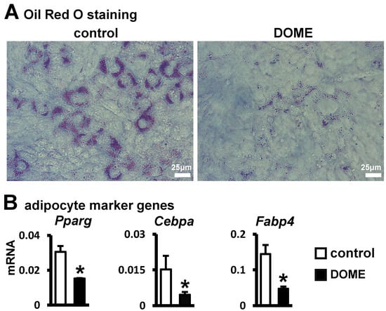 3.3. Inhibition of Adipogenic Differentiation in ST2 Cells by DOME