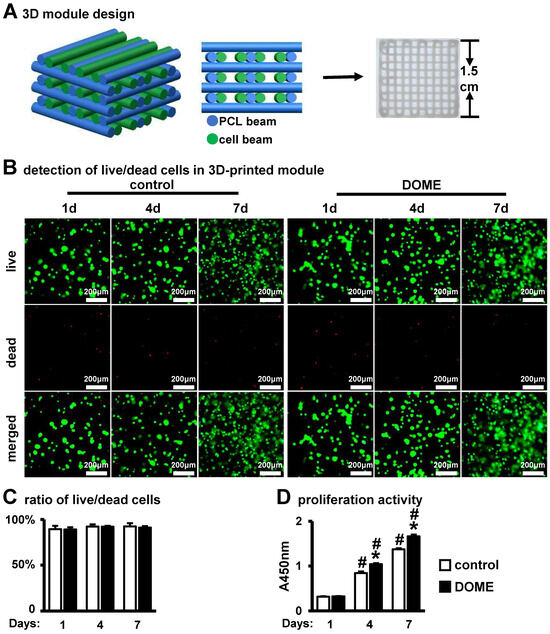 3.6. DOME Promotes Cell Proliferation in the PCI3D Scaffold