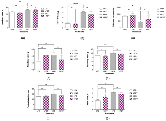 2.3. Animal Body Weight, Composition, and Endurance