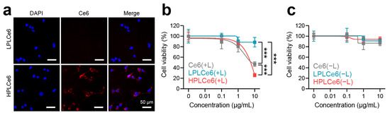 2.6. In Vitro Cytotoxicity Assay of PLCe6 Nanoparticles
