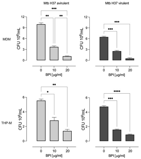 3.2. BPI Inhibits the Intracellular Growth of M. tuberculosis in Macrophages