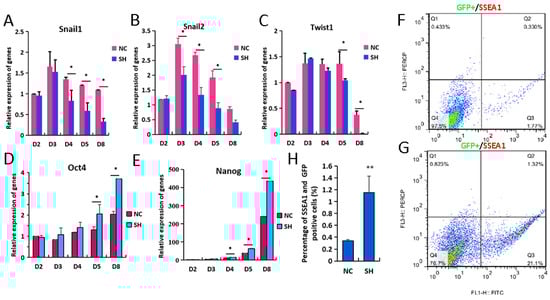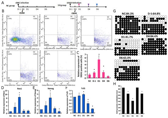 3.2. H19 Knockdown Facilitates Expression of Pluripotent Genes during iPSCs Reprogramming