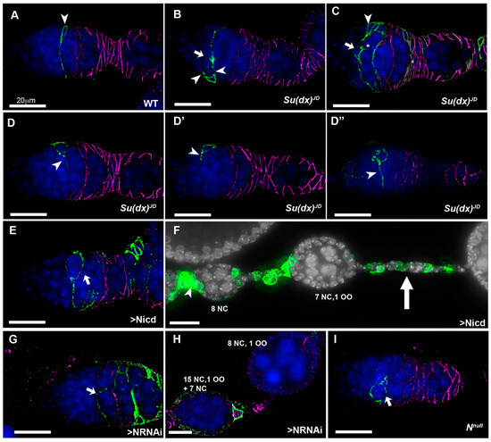 - Vachias, C.; Couderc, J.L.; Grammont, M. A two-step Notch-dependant mechanism controls the selection of the polar cell pair in Drosophila oogenesis. Development 2010, 137, 2703–2711. [Google Scholar] [CrossRef] [PubMed]