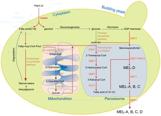 - Freitag, J.; Ast, J.; Linne, U.; Stehlik, T.; Martorana, D.; Bolker, M.; Sandrock, B. Peroxisomes contribute to biosynthesis of extracellular glycolipids in fungi. Mol. Microbiol. 2014, 93, 24–36. [Google Scholar] [CrossRef]