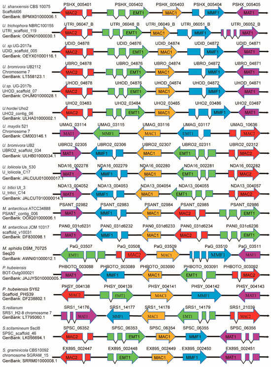 - Cittadino, G.M.; Andrews, J.; Purewal, H.; Estanislao Acuna Avila, P.; Arnone, J.T. Functional clustering of metabolically related genes is conserved across Dikarya. J. Fungi 2023, 9, 523. [Google Scholar] [CrossRef]