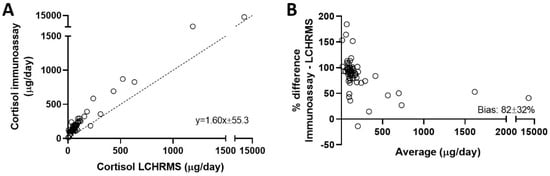 - Wood, L.; Ducroq, D.H.; Fraser, H.L.; Gillingwater, S.; Evans, C.; Pickett, A.J.; Rees, D.W.; John, R.; Turkes, A. Measurement of urinary free cortisol by tandem mass spectrometry and comparison with results obtained by gas chromatography-mass spectrometry and two commercial immunoassays. Ann. Clin. Biochem. 2008, 45, 380–388. [Google Scholar] [CrossRef] [PubMed]