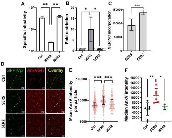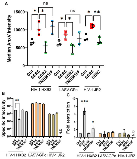 3.6. Manipulation of Viral Lipid Composition Reveals That SER5 Restriction Is Unrelated to External PS Content of the Viruses