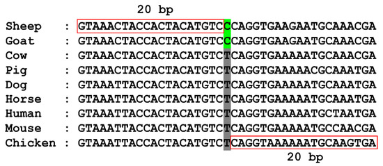 - Jahura, F.; Munira, S.; Bhuiyan, A.; Hoque, M.; Bhuiyan, M. Molecular detection of goat and sheep meat origin using mitochondrial cytochrome b gene. Bangladesh J. Anim. Sci. 2016, 45, 41–45. [Google Scholar] [CrossRef]