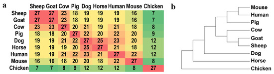 - Elsik, C.G.; Tellam, R.L.; Worley, K.C.; Gibbs, R.A.; Abatepaulo, A.R.R.; Abbey, C.A.; Adelson, D.L.; Aerts, J.; Ahola, V.; Alexander, L.; et al. The Genome Sequence of Taurine Cattle: A Window to Ruminant Biology and Evolution. Science 2009, 324, 522–528. [Google Scholar]