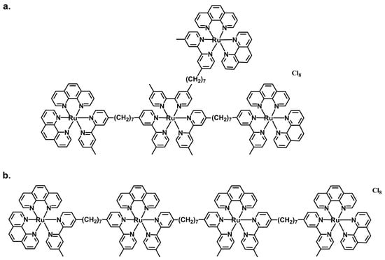 - Gorle, A.K.; Feterl, M.; Warner, J.M.; Wallace, L.; Keene, F.R.; Collins, J.G. Tri- and tetra-nuclear polypyridyl ruthenium(II) complexes as antimicrobial agents. Dalton Trans. 2014, 43, 16713–16725. [Google Scholar] [CrossRef] [PubMed]