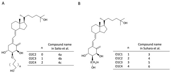 - Kittaka, A. Creation of potent vitamin D receptor agonists and antagonists with 2α-(ω-hydroxyalkylation) concept to the seco-steroid skeleton. Chimia 2018, 72, 859–865. [Google Scholar] [CrossRef]