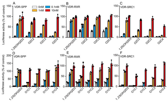 3.1. Effects of Vitamin D Derivatives on VDR Transactivation Activity and Interaction of VDR with RXR and SRC-1