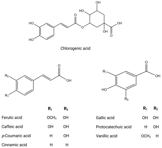 The fruit of the olive tree exhibits a significant diversity in both primary and secondary metabolites. Its vegetable oil is enriched with a variety of fatty acid compounds, predominantly polyunsaturated fatty acids, along with tocopherols and carotenoids, which play crucial roles in protecting against oxidative stress [54]. Additionally, olive oil is distinguished by the existence of volatile compounds such as isoprene, (E)-Hex-2-enal and α-copaene and other volatile molecules [79], as well as phenolic compounds including hydroxytyrosol, p-coumaric acid, quercetin, and luteolin. Numerous studies have highlighted the diverse chemical composition of olive oil [80,81]. The olive fruit possesses a valuable phenolic composition, characterized by flavonoids, secoiridoids, coumarins, phenolic acids, and triterpenoids, as evidenced by research [62,82,83]. Olive tree seeds are extremely interesting due to the wide variety of primary metabolites they contain, including proteins, fatty acids, and minerals [84]. One notable defining feature of olive seed oil is the presence of polar lipids, which include 94 lipid species and 10 polar lipid classes in their chemical makeup. Phospholipids, glycolipids, acylsterolglycosides, and sphingolipids are some of these classes [85]. When compared to saturated fats, the fraction of polyunsaturated fatty acids in these polar lipids is much larger [86]. Numerous investigations into the polar lipidome of olive seeds have identified notable variations across olive tree cultivars, which are ascribed to the existence or non-existence of certain lipid species. Polar lipid composition has been established and has attracted interest from the cosmetics and culinary sectors because of its significant nutritional significance [87]. Moreover, one fascinating finding about the seed’s phenolic compounds is that they belong to the subclass of secoiridoids, which is defined by the existence of nüzhenide and its derivatives (Figure 6). These compounds, which are exclusive to olive seeds, have strong biological activity and show great promise for improving human health [88]. The constituents of olive leaves, as reported from the essential oil extracted via hydrodistillation, exhibit an interesting chemical composition comprising oxygenated monoterpenes, oxygenated sesquiterpenes, and monoterpene hydrocarbons [61,89]. As secondary metabolites, sesquiterpenes have drawn significant attention in bio-pharmacology, particularly as potential natural anticancer agents [90]. An olive leaf extract contains a wide variety of phenolic chemicals, including phenolic acids (gallic acid, protocatechuic acid, vanillic acid, and salicylic acid); flavonoids (rutin, diosmetin, and apigenin); lignans (pinoresinol and syringaresinol); triterpenoids, secoiridoids, and derivatives (oleuropein, loganoside, and ligstroside) [91,92,93,94,95]. In light of the fact that olive leaves contain numerous bioactive molecules with varied biological functions, they have gained significant attention as potent by-products of the olive tree [96,97]. The phytochemical composition of the olive tree is highly diverse, resulting in various biological activities. Its bioactive molecules can act as antidiabetic, anti-inflammatory, antifungal, antibacterial, antioxidant, and anticancer agents [98,99,100,101,102].