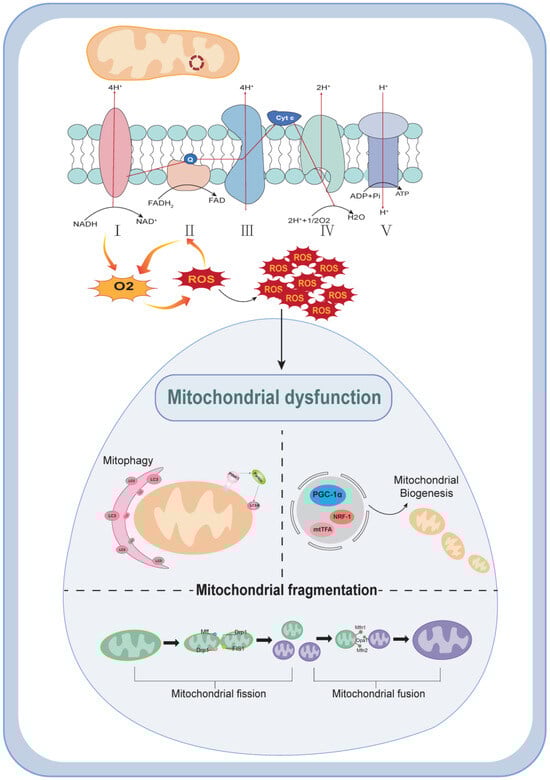 The main physiological function of mitochondria is to produce ATP through oxidative phosphorylation, while other functions include mitochondrial biogenesis, reactive oxygen species production, autophagy, fusion, and lysis. Damage to mitochondria caused by any of these aspects can be referred to as mitochondrial dysfunction. In the following, we will discuss the main mechanisms of mitochondrial dysfunction, mainly from the above four aspects.