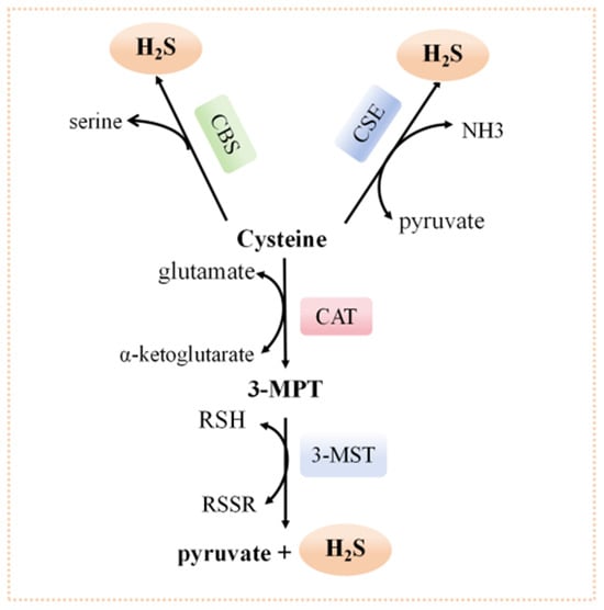 - Cirino, G.; Szabo, C.; Papapetropoulos, A. Physiological roles of hydrogen sulfide in mammalian cells, tissues, and organs. Physiol. Rev. 2023, 103, 31–276. [Google Scholar] [CrossRef]