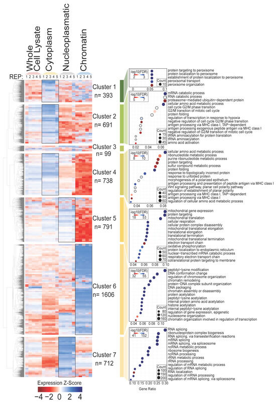 Figure 2. Molecular functions associated with distinct subcellular fractions. Z-scores quantifying the relative expression of proteins in the indicated cell fractions were used to classify proteins with similar expression patterns into clusters. Functional analysis showing enriched Gene Ontology categories for each cluster is shown (right).