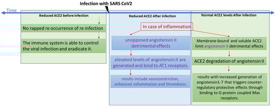 A chart showing the different scenarios with regards to time of infection compared with levels of ACE2.