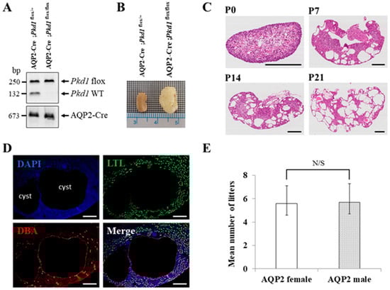 - Raphael, K.L.; Strait, K.A.; Stricklett, P.K.; Miller, R.L.; Nelson, R.D.; Piontek, K.B.; Germino, G.G.; Kohan, D.E. Inactivation of Pkd1 in principal cells causes a more severe cystic kidney disease than in intercalated cells. Kidney Int. 2009, 75, 626–633. [Google Scholar] [CrossRef] [PubMed]