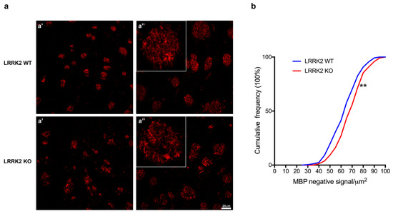 3.2. LRRK2 KO Cultures Exhibited a Reduced Number of Mature MBP+ OLs