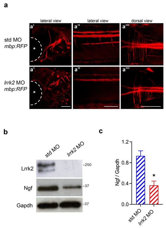 3.6. Zebrafish Injected with lrrk2 MO Displayed Reduced Levels of Mbp and Ngf