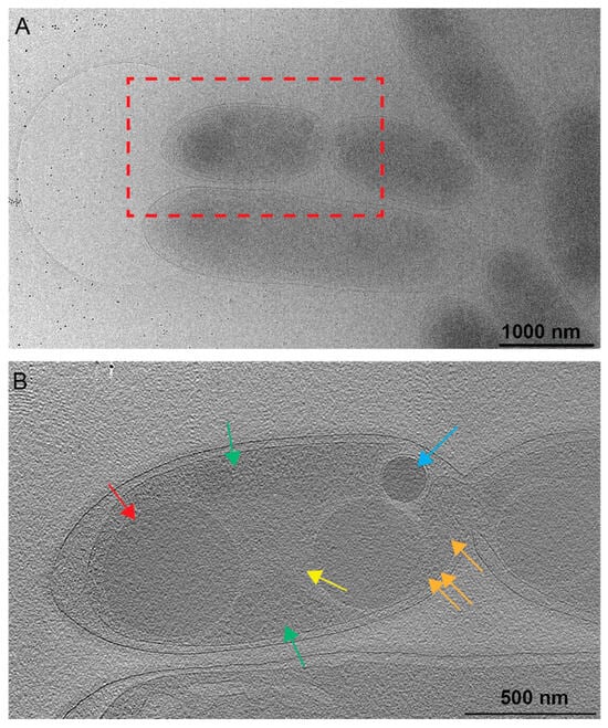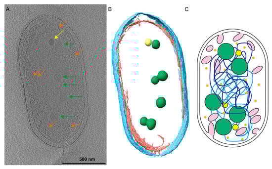 - Comolli, L.R.; Kundmann, M.; Downing, K.H. Characterization of intact subcellular bodies in whole bacteria by cryo-electron tomography and spectroscopic imaging. J. Microsc. 2006, 223, 40–52. [Google Scholar] [CrossRef] [PubMed]