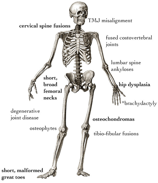 - Towler, O.W.; Shore, E.M.; Kaplan, F.S. Skeletal malformations and developmental arthropathy in individuals who have fibrodysplasia ossificans progressiva. Bone 2020, 130, 115116. [Google Scholar] [CrossRef] [PubMed]