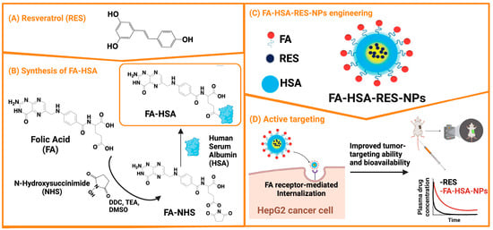 - Lian, B.; Wu, M.; Feng, Z.; Deng, Y.; Zhong, C.; Zhao, X. Folate-conjugated human serum albumin-encapsulated resveratrol nanoparticles: Preparation, characterization, bioavailability and targeting of liver tumors. Artif. Cells Nanomed. Biotechnol. 2019, 47, 154–165. [Google Scholar] [CrossRef]