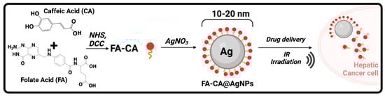 | FA-CA@AgNPs | Folic acid, Caffeic Acid | Silver nanoparticles | Small particle size (10–20 nm) | Higher antiproliferative effects, apoptosis induction by caspase-8, caspase-3, and TNF-α pathways | [90] |