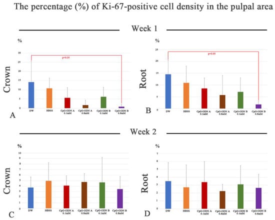 3.2. Analysis of Cell Proliferation in the Pulpal Tissue by Ki-67 Immunohistochemistry