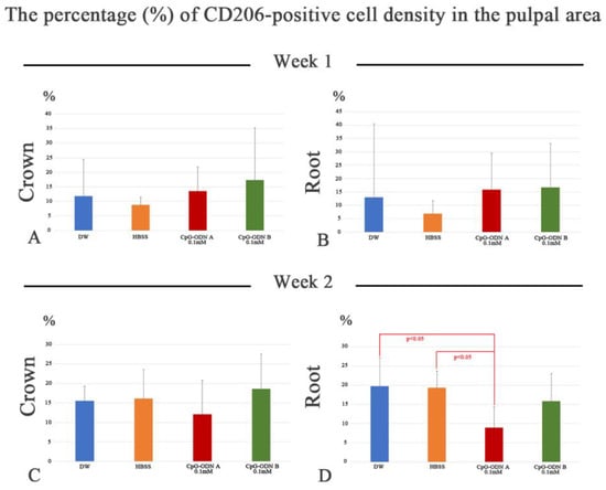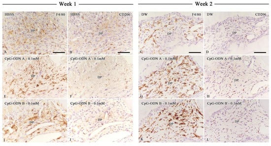 3.3. Assessment of Macrophage Activity in the Dental Pulp by F4/80 and CD206 Immunohistochemistry