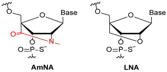 Chemical structure of AmNA and LNA phosphorothioate moieties.