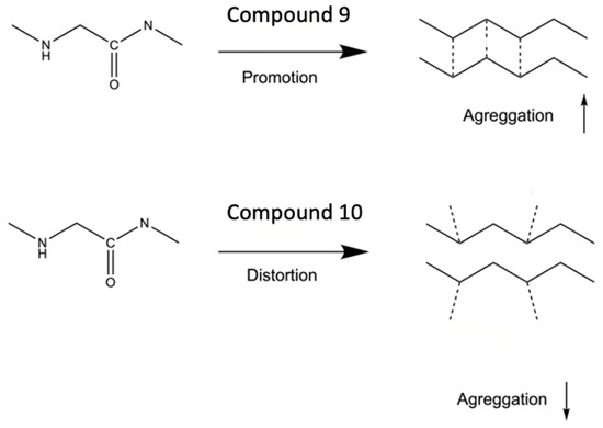 Schematic illustration of the promotion and distortion of the aggregation process by compounds 9 and 10.