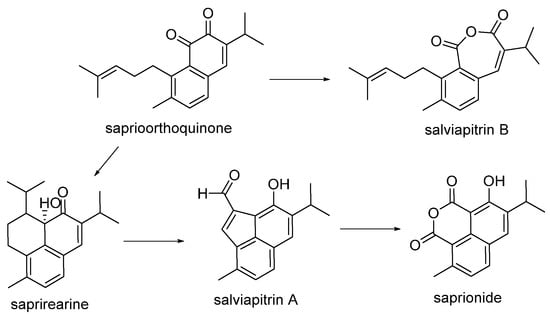 135. Saruul, E.; Murata, T.; Selenge, E.; Sasaki, K.; Yoshizaki, F.; Batkhuu, J. An antibacterial ortho-quinone diterpenoid and its derivatives from Caryopteris mongolica. Bioorg. Med. Chem. Lett. 2015, 25, 2555–2558. [Google Scholar] [CrossRef]