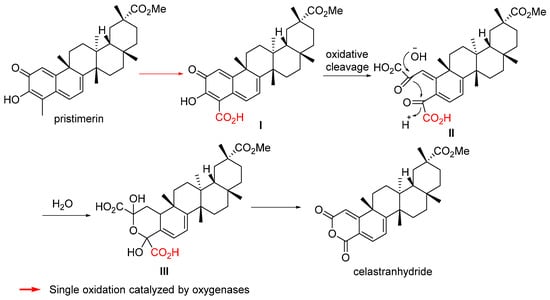 165. Gamlath, C.B.; Gunatilaka, A.A.L.; Tezuka, Y.; Kikuchi, T. The structure of celastranhydride: A novel triterpene anhydride of Celastraceae. Tetrahedron Lett. 1988, 29, 109–112. [Google Scholar] [CrossRef]