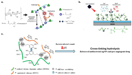 - Peng, Z.-X.; Wang, L.; Du, L.; Guo, S.-R.; Wang, X.-Q.; Tang, T.-T. Adjustment of the antibacterial activity and biocompatibility of hydroxypropyltrimethyl ammonium chloride chitosan by varying the degree of substitution of quaternary ammonium. Carbohydr. Polym. 2010, 81, 275–283. [Google Scholar] [CrossRef]