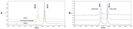 - Kim, J.; Kim, Y.J.; Cao, M.; De Mel, N.; Albarghouthi, M.; Miller, K.; Bee, J.S.; Wang, J.; Wang, X. Analytical characterization of coformulated antibodies as combination therapy. mAbs 2020, 12, 1738691. [Google Scholar] [CrossRef]