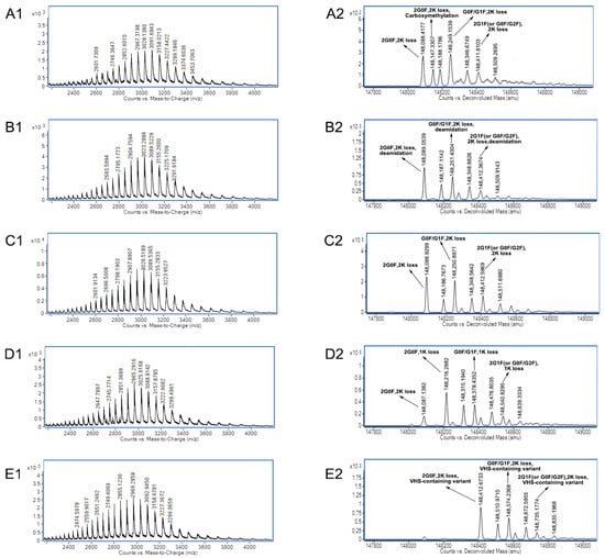 - Liu, Z.; Cao, Y.; Zhang, L.; Xu, Y.; Zhang, Z. In-Depth Characterization of mAb Charge Variants by On-Line Multidimensional Liquid Chromatography-Mass Spectrometry. Anal. Chem. 2023, 95, 7977–7984. [Google Scholar] [CrossRef]