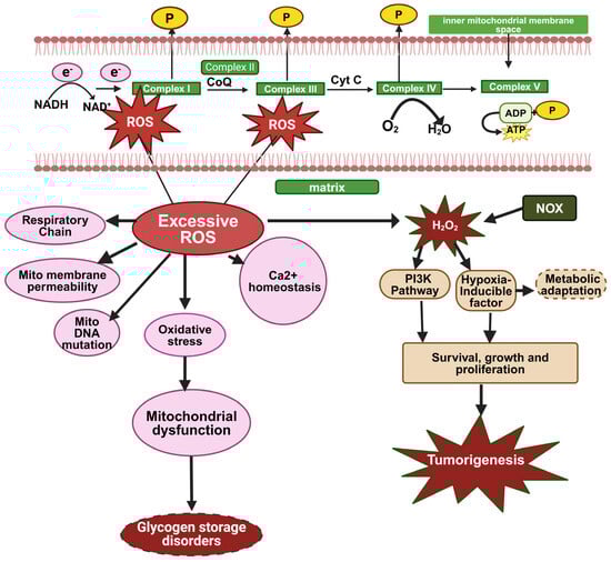 - Palma, F.R.; Gantner, B.N.; Sakiyama, M.J.; Kayzuka, C.; Shukla, S.; Lacchini, R.; Cunniff, B.; Bonini, M.G. ROS production by mitochondria: Function or dysfunction? Oncogene 2024, 43, 295–303. [Google Scholar] [CrossRef]