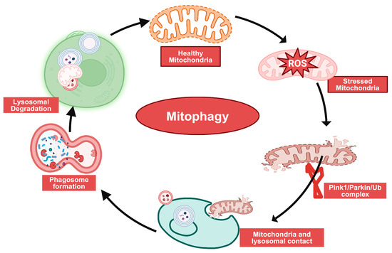 - Narendra, D.P.; Jin, S.M.; Tanaka, A.; Suen, D.-F.; Gautier, C.A.; Shen, J.; Cookson, M.R.; Youle, R.J. PINK1 is selectively stabilized on impaired mitochondria to activate Parkin. PLoS Biol. 2010, 8, e1000298. [Google Scholar] [CrossRef]