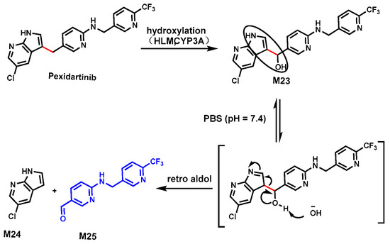 CYP3A-mediated C–C bond cleavages in Pexidartinib via retro aldol.