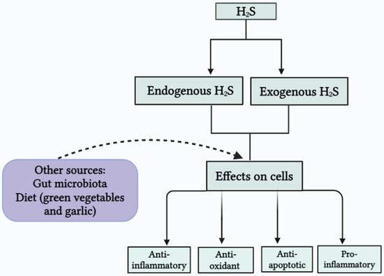 Figure 2 provides an overview of the sources of H2S in the body and its effects on cells.